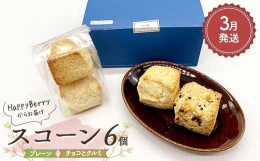■【ふるさと納税】【2026年3月発送】人気店 HappyBerryのスコーン 6個(プレーン4個、チョコとクルミ2個) 焼菓子 スイーツ F6U-155