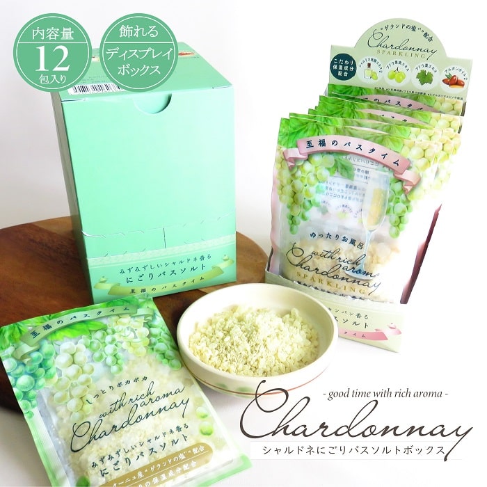 ■入浴剤 バスソルト シャルドネ にごりバスソルトボックス 12包入り ディスプレイボックス仕様 3種類のブドウエキス配合 ブルターニュ産海