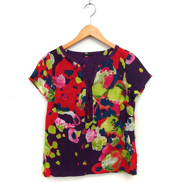 ■【中古】シスレー SISLEY スリットネック ブラウス 透け感 プリント カットソー 半袖 XS 紫 パープル /NT15