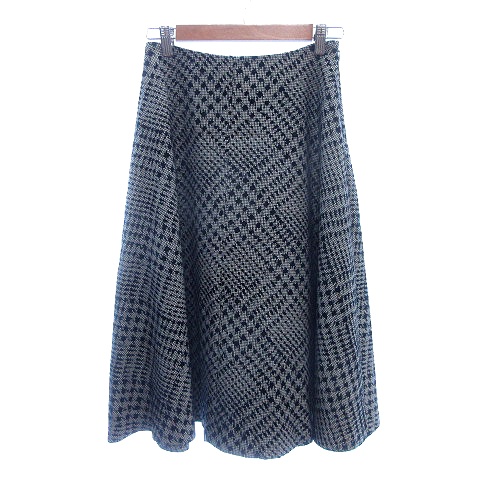 ■【中古】ジルスチュアート JILL STUART フレアスカート ミモレ ロング 千鳥格子 フロッキープリント 2 S グレー