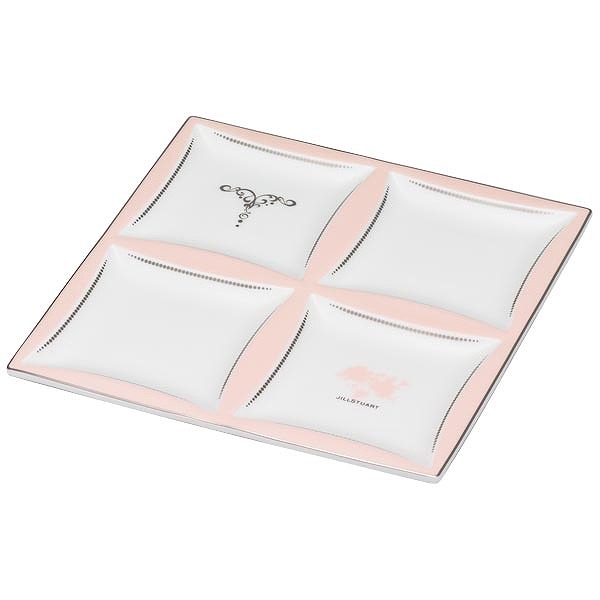 小ぶりなケーキやマカロン、チョコレートなど、4つに分かれたスペースにお気に入りのスイーツを盛り付けて♪ 「CUTE×PRETTY×SEXY」をキーワードに、世界中の女性たちから圧倒的な支持を受けるブランド「JILL STUART」。 そんな女性らしくSWEETな彼女の世界観を表現したテーブルウェアが誕生しました。 女の子の「かわいい」がつまったJILL STUARTのテーブルウェアコレクションです。 素材:ボーンチャイナ 原産国:日本 パッケージサイズ:約225-220-35mm セット内容:デザートプレート×1【化粧箱入り】 大きさ:長径:200mm 短径:200mm 高さ:13mm 備考 ※銀彩を施しておりまので、電子レンジ・食洗機はお使いいただけません。 ギフト クリスマス 誕生日 バレンタインデー ホワイトデー 引き出物 結婚内祝い 出産内祝い 内祝い 快気祝い 新築内祝い お返し プレゼント