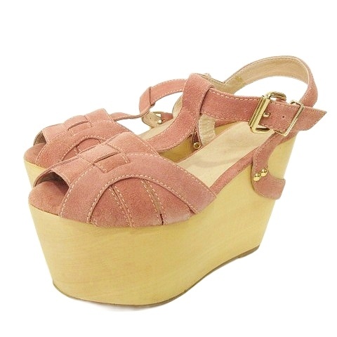 ■【中古】ジルスチュアート 厚底 サンダル スエード ストラップ ウェッジソール 約22.5cm ピンク ■YHS7 レディース
