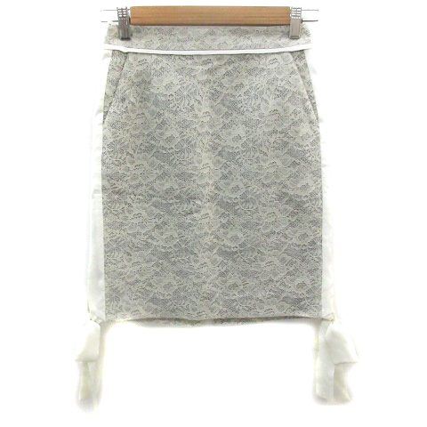 ■【中古】ジルスチュアート JILL STUART タイトスカート ミニ丈 レース リボン 0 オフホワイト 白 グレー レディース
