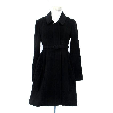 ■【中古】ジルスチュアート ステンカラーコート ロング丈 ベルト付き ウール アンゴラ混 S 黒 ブラック レディース