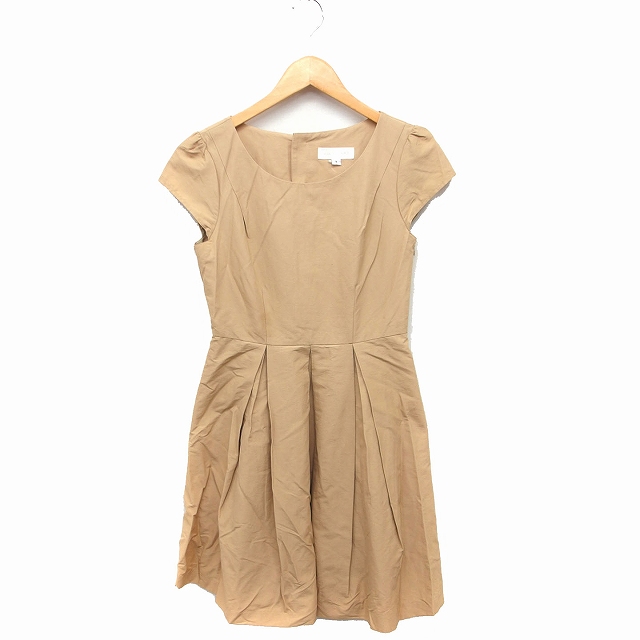 ■【中古】ジルスチュアート JILL STUART フレア ワンピース ひざ丈 キャップスリーブ 半袖 丸首 無地 2 ベージュ /FT21