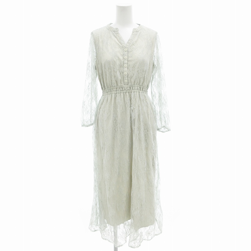 ■【中古】ジルスチュアート JILL STUART ワンピース レース 花柄 オープンカラー 長袖 ロング F グレー