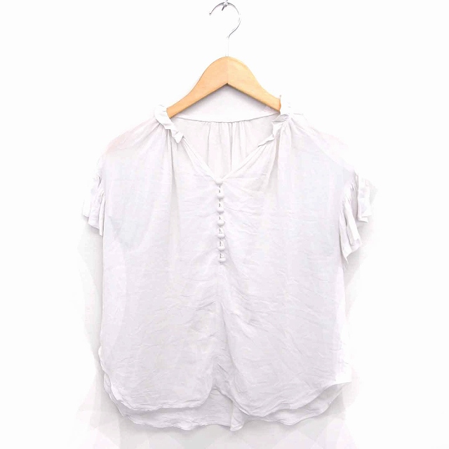 ■【中古】ジルスチュアート JILL STUART シャツ ブラウス ハーフボタン 透け感 プルオーバー 半袖 S アイボリー /TT26