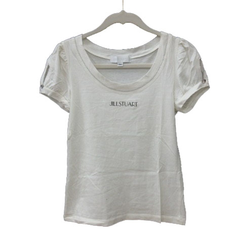■【中古】ジルスチュアート Tシャツ カットソー Uネック プリント 半袖 F 白 アイボリー 銀色 黒 レディース
