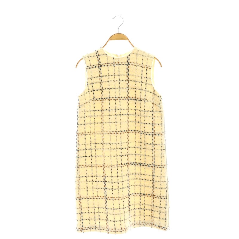 ■【中古】ジルスチュアート チェック柄ツイードノースリーブワンピース 膝丈 ウール混 0 アイボリー 黒 茶 レディース