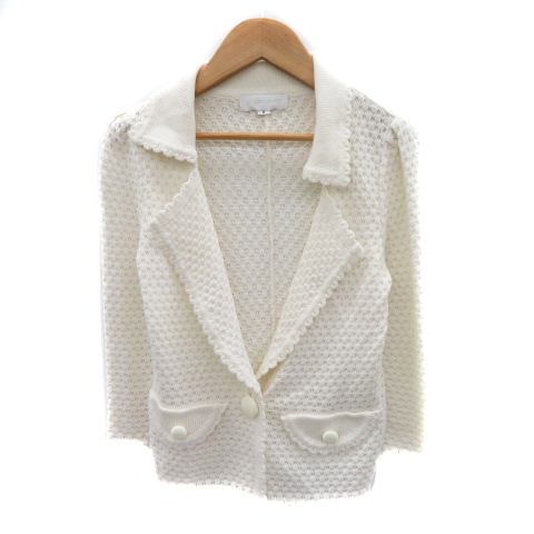 ■【中古】ジルスチュアート カーディガン ニットジャケット 七分袖 オープンカラー S オフホワイト レディース