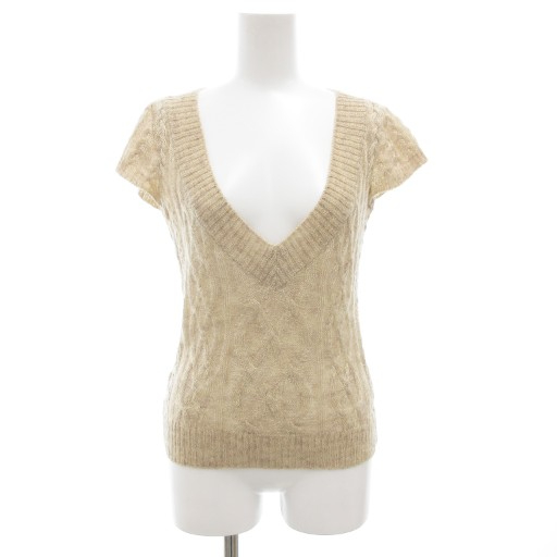 ■【中古】ジルスチュアート JILL STUART ラメニット セーター モヘア混 M ベージュ Vネック 半袖 ケーブル編み /GV