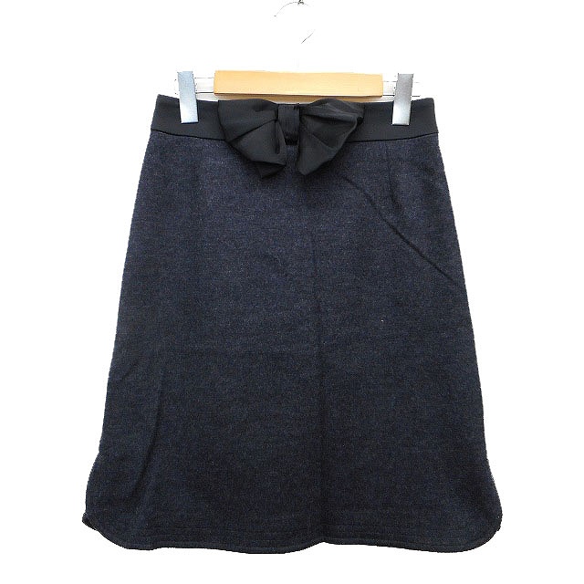 ■【中古】ジルスチュアート JILL STUART 台形 スカート 膝丈 メルトン リボン 切替テープ ラウンドヘム ウール 毛 0