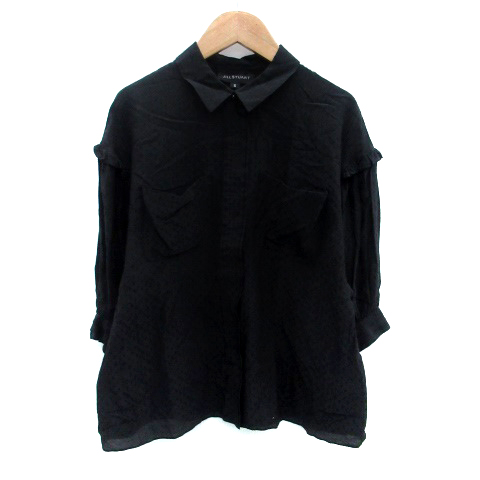 ■【中古】ジルスチュアート JILL STUART シャツ ブラウス 五分袖 ドット柄 フリル ティアード S 黒 ブラック