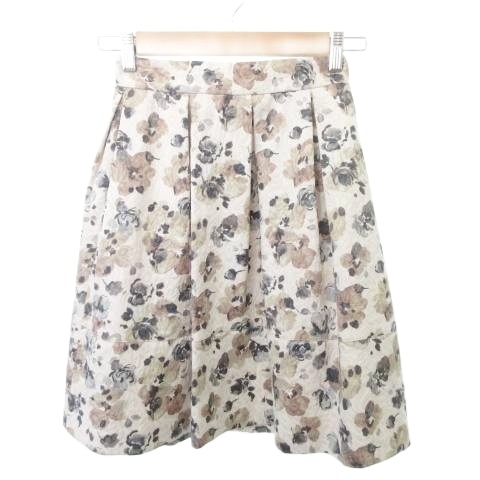 ■【中古】ジルスチュアート 美品 スカート ひざ丈 フレア 花柄 フラワー 厚手 Sサイズ アイボリー ■YHS7 レディース