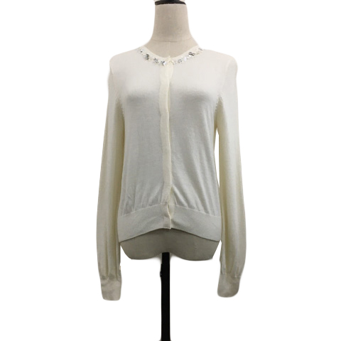■【中古】ジルスチュアート カーディガン ニット ラウンドネック ビーズ 無地 長袖 M 白 ホワイト レディース