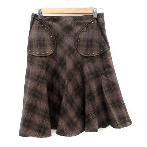 ■【中古】ジルスチュアート JILL STUART フレアスカート ミモレ丈 チェック柄 ウール 2 茶色 ブラウン レディース