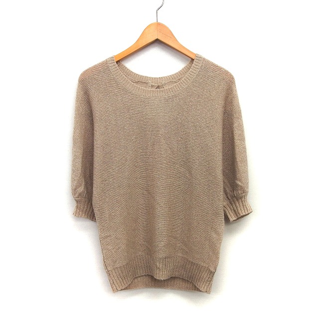 ■【中古】ジルスチュアート JILL STUART セーター ニット ラメ混 シンプル 切替リブ 背あき 七分袖 丸首 ウール混