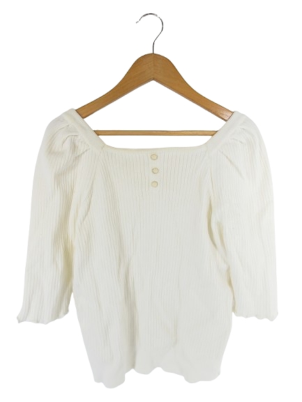 ■【中古】ジルスチュアート JILL STUART プルオーバー ニット スクエアネック 五分袖 リブ 無地 アイボリー サイズF