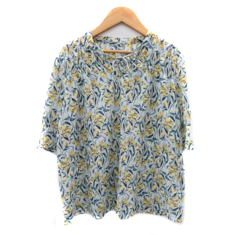 ■【中古】ジルスチュアート ブラウス カットソー 半袖 スリットネック 花柄 S マルチカラー ライトブルー レディース