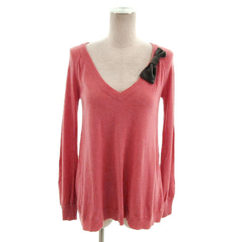 ■【中古】ジルスチュアート JILL STUART ニット セーター 長袖 Vネック リボン ピンク グレー FR レディース