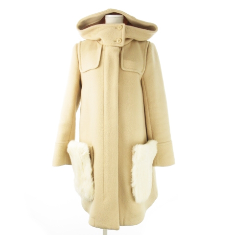 ■【中古】ジルスチュアート JILL STUART ダッフルコート フーディ 比翼 ワンポイント ファーポケット M ベージュ