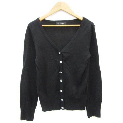 ■【中古】ジルスチュアート JILL STUART カーディガン ミドル丈 Vネック アンゴラ混 M ブラック 黒 /YM33 レディース