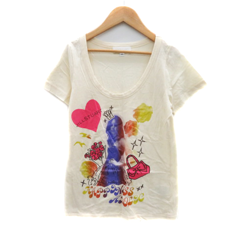 ■【中古】ジルスチュアート JILL STUART Tシャツ カットソー 半袖 プリント F マルチカラー アイボリー レディース