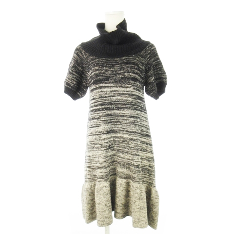 ■【中古】ジルスチュアート JILL STUART ニットワンピース ミニ ハイネック 半袖 グラデーション ラメ 2 M 黒