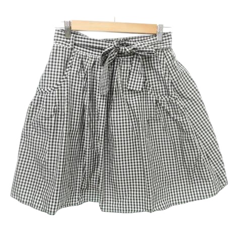 ■【中古】ジルスチュアート スカート ひざ丈 フレア ナイロン チェック 薄手 4 約XLサイズ 黒 ■YHS6 レディース