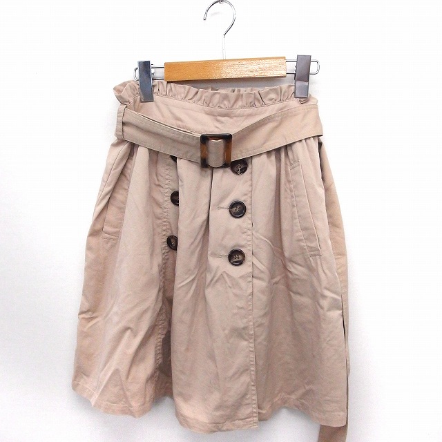 ■【中古】ジルスチュアート JILL STUART スカート フレア ボタンダウン ひざ丈 ベルト 綿 S ベージュ /FT2 レディース