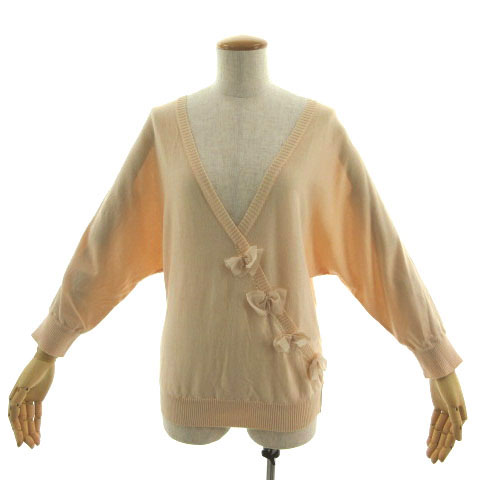 ■【中古】ジルスチュアート JILL STUART ニット セーター カシュクール 長袖 レースリボン 日本製 ピンクベージュ系 M レディース