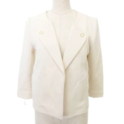 ■【中古】ジルスチュアート 美品 ノーカラー ジャケット 長袖 無地 厚手 Sサイズ アイボリー ■YHS3 レディース