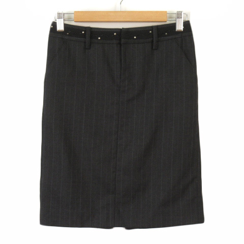 ■【中古】ジルスチュアート JILL STUART スカート タイト ストライプ レース スタッズ 0 黒 ブラック レディース