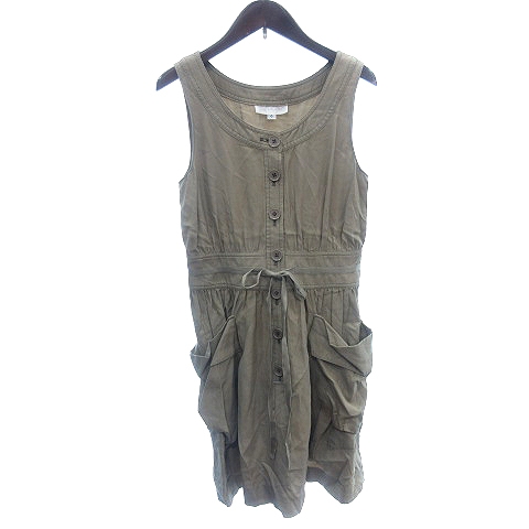 ■【中古】ジルスチュアート JILL STUART ワンピース ミニ カーゴ ノースリーブ ウエストマーク 0 XS カーキ 緑