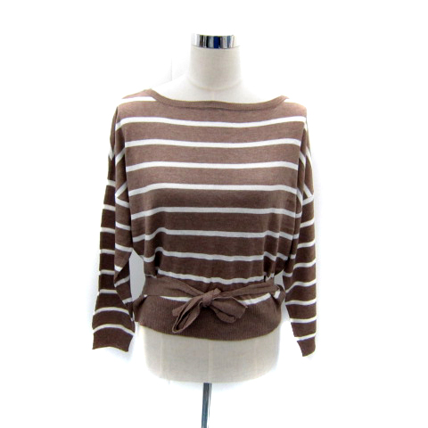■【中古】ジルスチュアート ニット カットソー 長袖 ボーダー柄 リボン M 茶 ブラウン 白 ホワイト /SY21 レディース