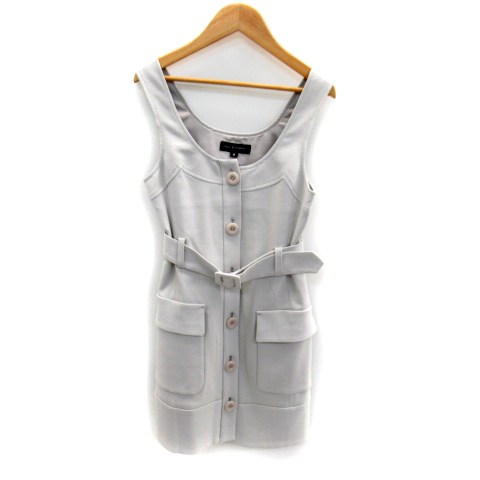 ■【中古】ジルスチュアート ワンピース ミニ丈 ノースリーブ Uネック 無地 ベルト付き 0 ライトグレー /SY3 レディース