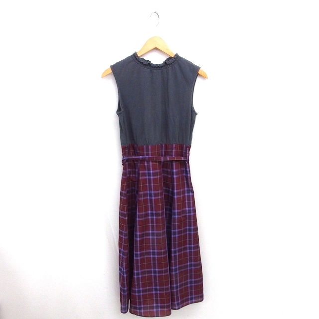 ■【中古】ジルスチュアート JILL STUART ワンピース ロング チェック 切り替え ウエストリボン ノースリーブ FR