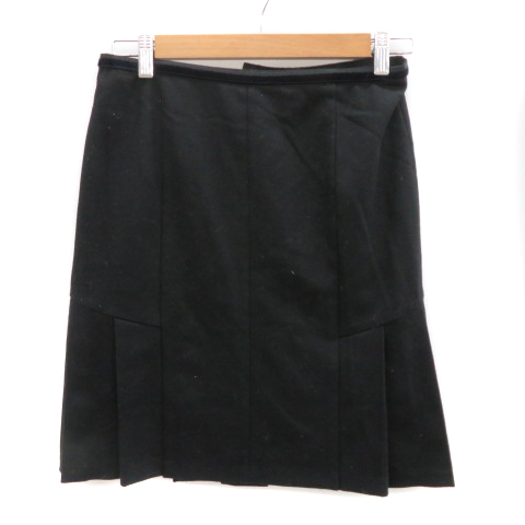 ■【中古】ジルスチュアート JILL STUART フレアスカート プリーツスカート ひざ丈 無地 ウール 2 ブラック レディース