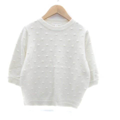 ■【中古】ジルスチュアート ニット セーター クルーネック 五分袖 総柄 刺繍 アンゴラ混 M オフホワイト レディース