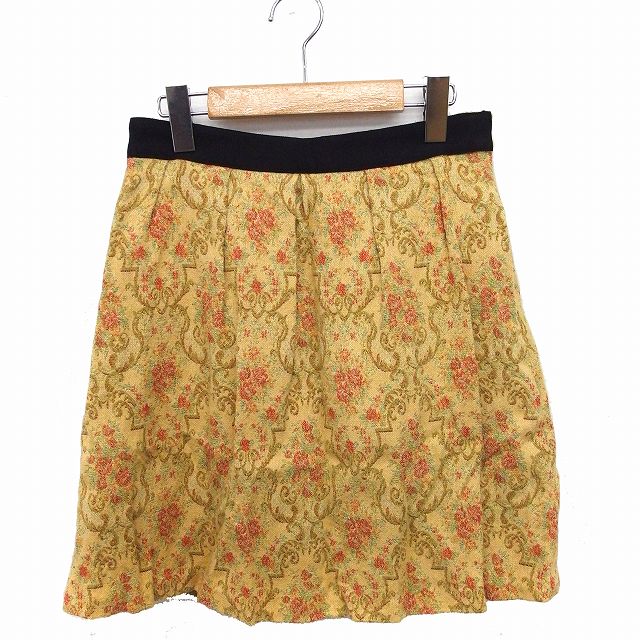 ■【中古】ジルスチュアート JILL STUART スカート 総柄 ラメ混 台形 ひざ丈 コットン 綿 2 イエロー 黄 /FT レディース