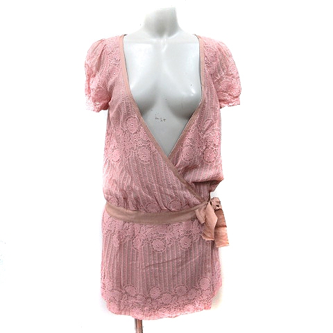 ■【中古】ジルスチュアート JILL STUART ワンピース ひざ丈 ラップ 巻き 総レース 半袖 2 M ピンク /YI レディース