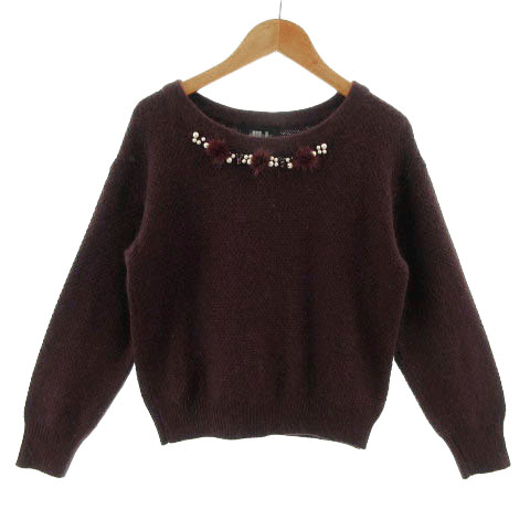 ■【中古】ジルスチュアート JILL STUART ニット 長袖 ビーズ アンゴラ混 エンジ系 エンジパープル FR レディース