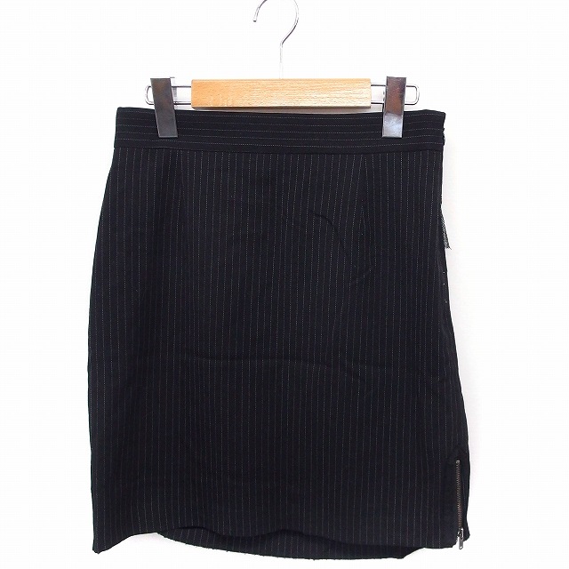 ■【中古】ジルスチュアート JILL STUART スカート ストライプ チュール タイト ミニ ウール混 2 黒 /FT13 レディース