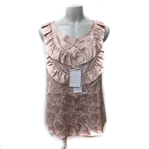 ■【中古】未使用品 ジルスチュアート シャツ ブラウス ノースリーブ フリル 花柄 絹 シルク M ピンクベージュ