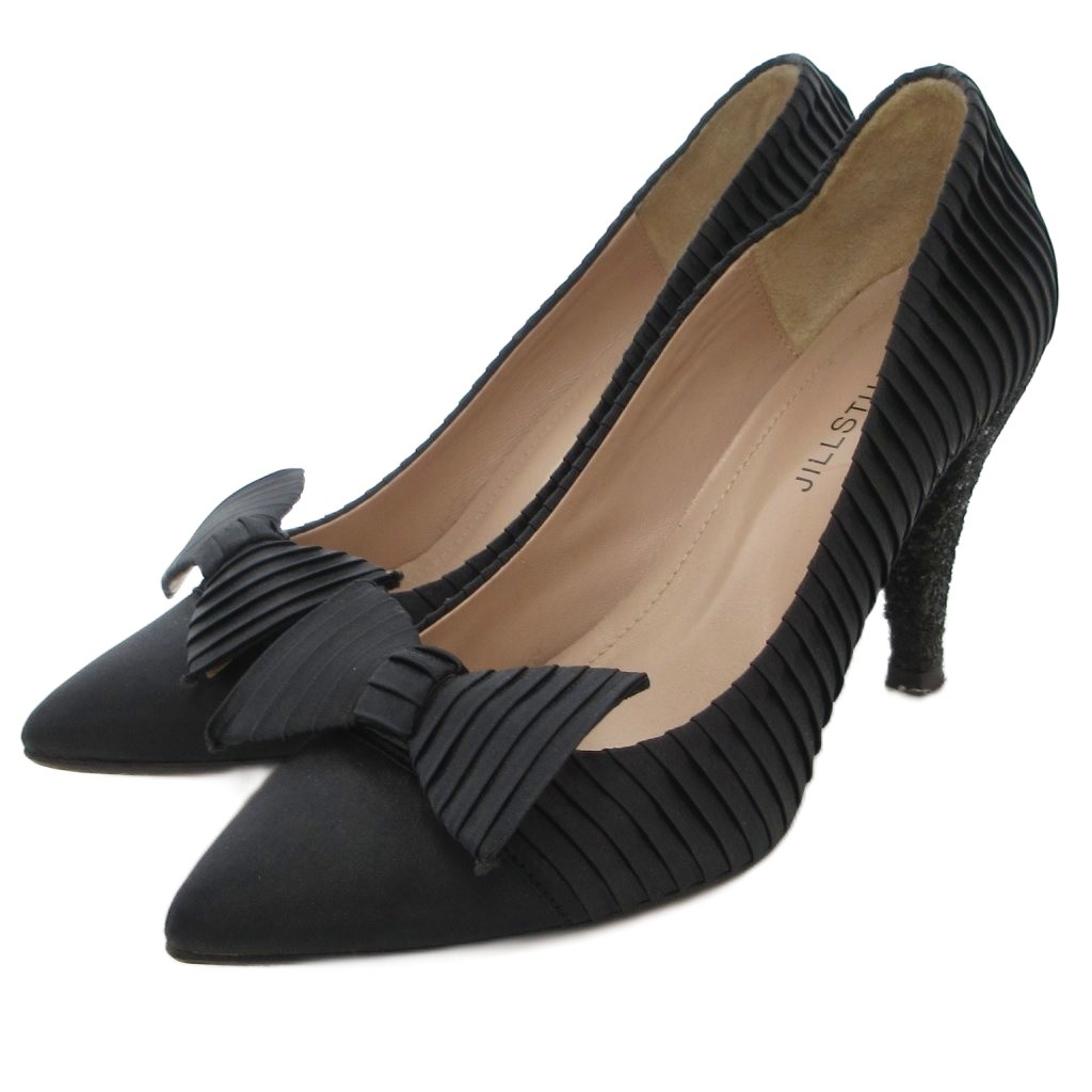 ■【中古】ジルスチュアート JILL STUART パンプス シューズ サテン生地 プリーツ リボン 23cm チャコールグレー /JS