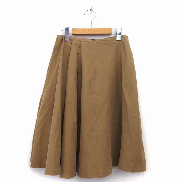 ■【中古】ジルスチュアート JILL STUART フレア スカート 膝下 アシンメトリー 無地 シンプル タック S ブラウン 茶