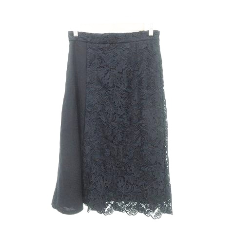 ■【中古】未使用品 ジルスチュアート JILL STUART タグ付き レース シフォン切替 ロング スカート フレア 4 ネイビー