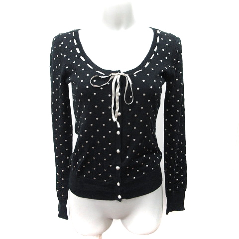 ■【中古】ジルスチュアート カーディガン ニット 刺繍 ボウタイ リボン 長袖 アンゴラ混 M 黒 ブラック /YI レディース
