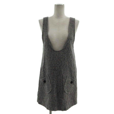 ■【中古】ジルスチュアート ワンピース ジャンパースカート ひざ丈 ツイード ミックス糸 黒 オフ白 マルチカラー 0