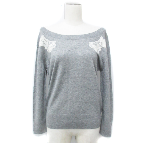 ■【中古】ジルスチュアート ニット カットソー 長袖 ラウンドネック レース アンゴラ混 M 杢グレー レディース